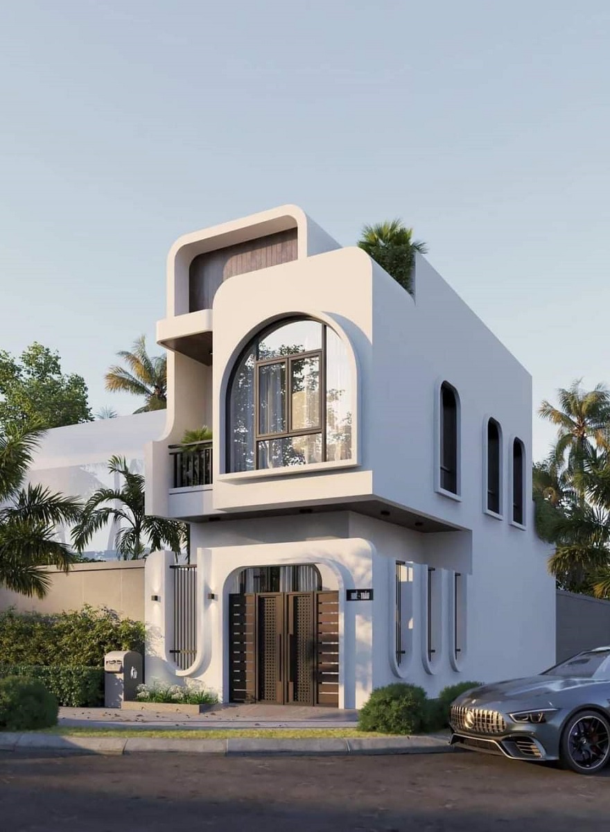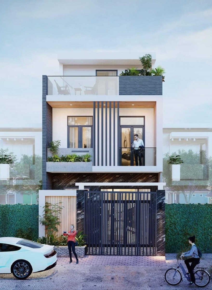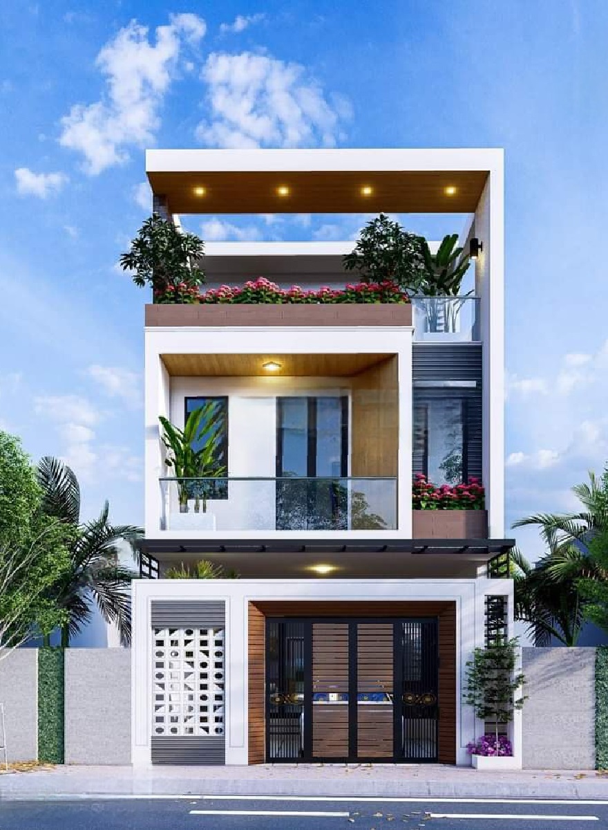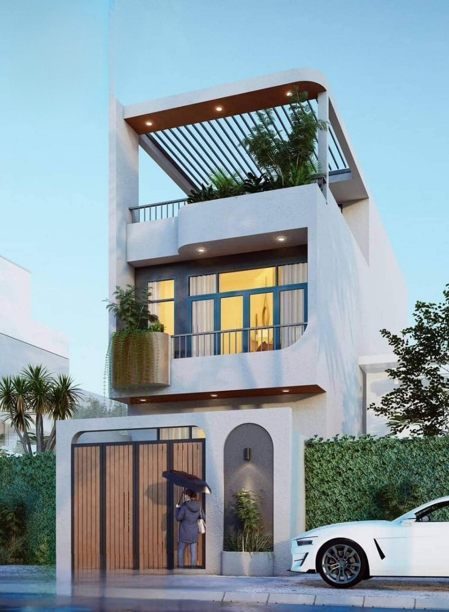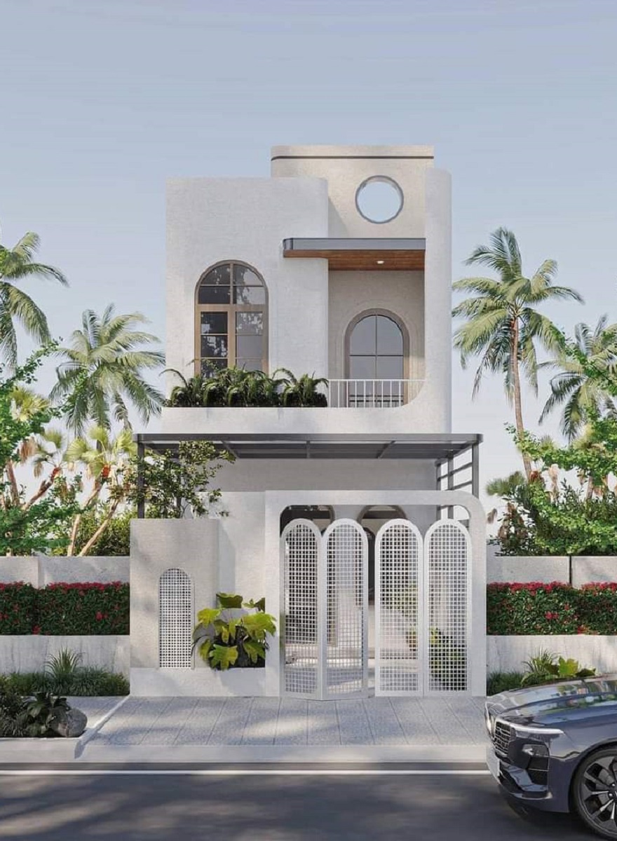 Xây nhà 3 tầng hiện đại tông trắng chủ đạo